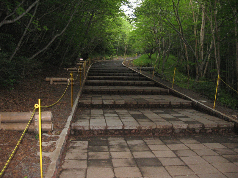 ![]() 登山開始(`・ω・´) 道が整備されていて歩きやすい、というかまだ普通の石段。 ![]() ここで、「雨が降りませんように」「登頂できますように」「高山病や怪我をしませんように」と祈願。 この3つの願いのうち1つは叶わないことに…。 ![]() 樹林帯に覆われた登山道を進んでいく。 須走口は最も緑が多い登山道なんです。虫が飛び交っているのは気になるところだけど。 ![]() 新五合目から新六合目の間に出会った人は、若者4人組・家族連れ・オジサンの計8人。 とても土曜日の富士山とは思えないのどかさだ。 ![]() ![]() ![]() ロープより外に出たら危険です。 ![]() ![]() ![]() 天気が悪いのか、それとも雲の中を歩いてるのか…? ![]() ![]() 3ヶ国語で応援…と思ったら、"ファイト"がカタカナだった。 ![]() 下山中の人も見える。 ![]() ここを間違えて降りていっちゃうと下山道に出てしまう。 ![]() ![]() 新六合目の長田山荘に到着。 新五合目では2本だった携帯のアンテナが、なぜかここでは3本とも立っていた。 ![]() ![]() だいぶ肌寒くなってきているので、あったか〜いジュースが売れている? ![]() 山小屋のおじさんに、小富士を歩いていたときから気になっていた、時折遠くで聞こえる 「ドーン」という音について尋ねてみると、どうやら自衛隊の演習の音とのこと。 雷じゃなかったのか。よかった。 ![]() ![]() それなのに、まだ下山道を降りている人が見える。 日が暮れてしまったら、懐中電灯があっても樹林帯を抜けるのは大変そう…。 ![]() そして富士山頂があらわに!……遠いな〜。 ![]() ![]() ![]() 本六合目の瀬戸館に到着。 新六合目の上って新七合目じゃないのか…orz 携帯のアンテナは3本のまま。 ![]() ここで汗をかいたシャツを着替え、寒くなってきたので雨具も着込む。 少し頭が痛いような気がする。これってもしかして…。 ![]() 本六合目を出発。 しばらくすると完全に日が暮れる。最初は月明かりだけで歩いていたが、月が岩陰に隠れてしまったので 懐中電灯を使用。 夜景を撮影してみる。 空を見上げると満天の星空。それも星が近くて大きい! 天然のプラネタリウムに、しばし立ち止まって見入っていた。 ![]() 七合目の大陽館に到着。標高2920m。携帯のアンテナは3本。 頭痛が酷くなってきたので、今日は山小屋泊してしまおうかと、ふと入口の方を見てみると…『満室』 ぎゃふん! ![]() こんなにパンパンに膨れていた。 ![]() 本七合目の見晴館に到着。 携帯の電波状態を見てみると、とうとう圏外に。 ![]() ![]() 八合目の江戸屋に到着。標高3270m 頭痛のため撮影する気力もなかったのか、こんな看板のどアップ写真しかなかった(;´Д`) 携帯のアンテナが3本に復活していた。 ![]() 本八合目の胸突江戸屋に到着。標高3370m。 ここで、1番人気の登山口である河口湖口と合流する。 そのために一気に登山者が増えて賑やかになる。 へばっていたので、その様子は撮れてないけど(´Д`;) |